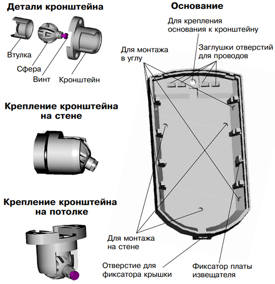 - Наличие кронштейна для изменения положения зоны обнаружения в пространстве.